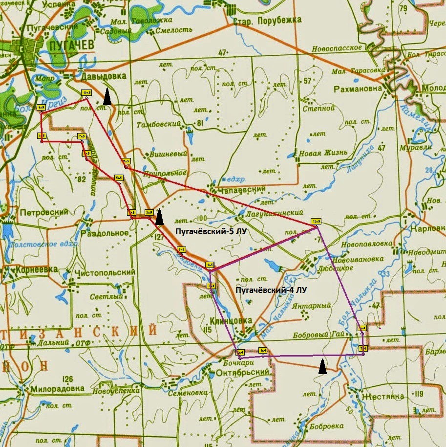 По пути к этому участку обнаружил также положение месторождений УВ в окрестностях Пугачёвских 4 и 5 ЛУ. Слышал потом, что рядом где-то там позднее обнаружили крупное Клинцовское месторождение. Возможно, это как раз то, что указано мной у с.Жестянка в Клинцовском районе.